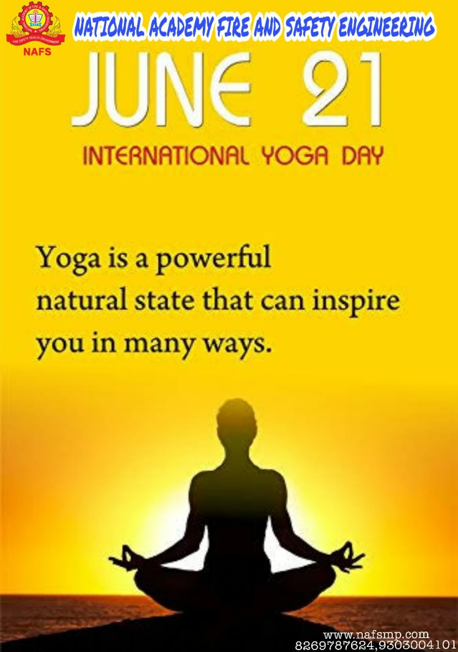 Happy International Yoga Day *अग्नि सुरक्षा एवं आपदा प्रबंधन संस्थान* NAFS- NATIONAL ACADEMY OF FIRE AND SAFETY ENGINEERING (M.P.) National Awarded Organization COURSE - DIPLOMA । PG DIPLOMA । B.TECH । MBA BRANCHES GWALIOR । BHOPAL । BETUL Website - WWW.NAFSMP.COM Call us - 8269787624 , 9303004101 WWW.NAFSMP.COM 8269787624 , 9303004101