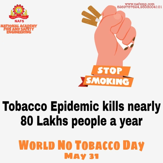 World No Tobacco Day May 31 Save Your Family & Society Tabacco Epidemic kills nearly 80 Lakhs people a year WWW.NAFSMP.COM 8269787624 , 9303004101 *अग्नि सुरक्षा एवं आपदा प्रबंधन संस्थान* *NAFS(NATIONAL ACADEMY OF FIRE AND SAFETY ENGINEERING) (M.P.)* *National Awarded Organization* COURSE - DIPLOMA । PG DIPLOMA । B.TECH । MBA BRANCHES GWALIOR । BHOPAL । BETUL Website - WWW.NAFSMP.COM Call us - 8269787624 , 9303004101