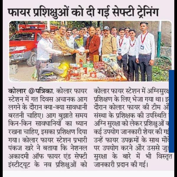 कोलार फायर स्टेशन में visit photos न्यूज़ पेपर में प्रकाशित हुई।